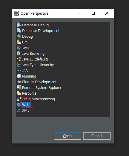우측 상단에 있는 아이콘을 perspective 를 선택해서 창을 띄운다.