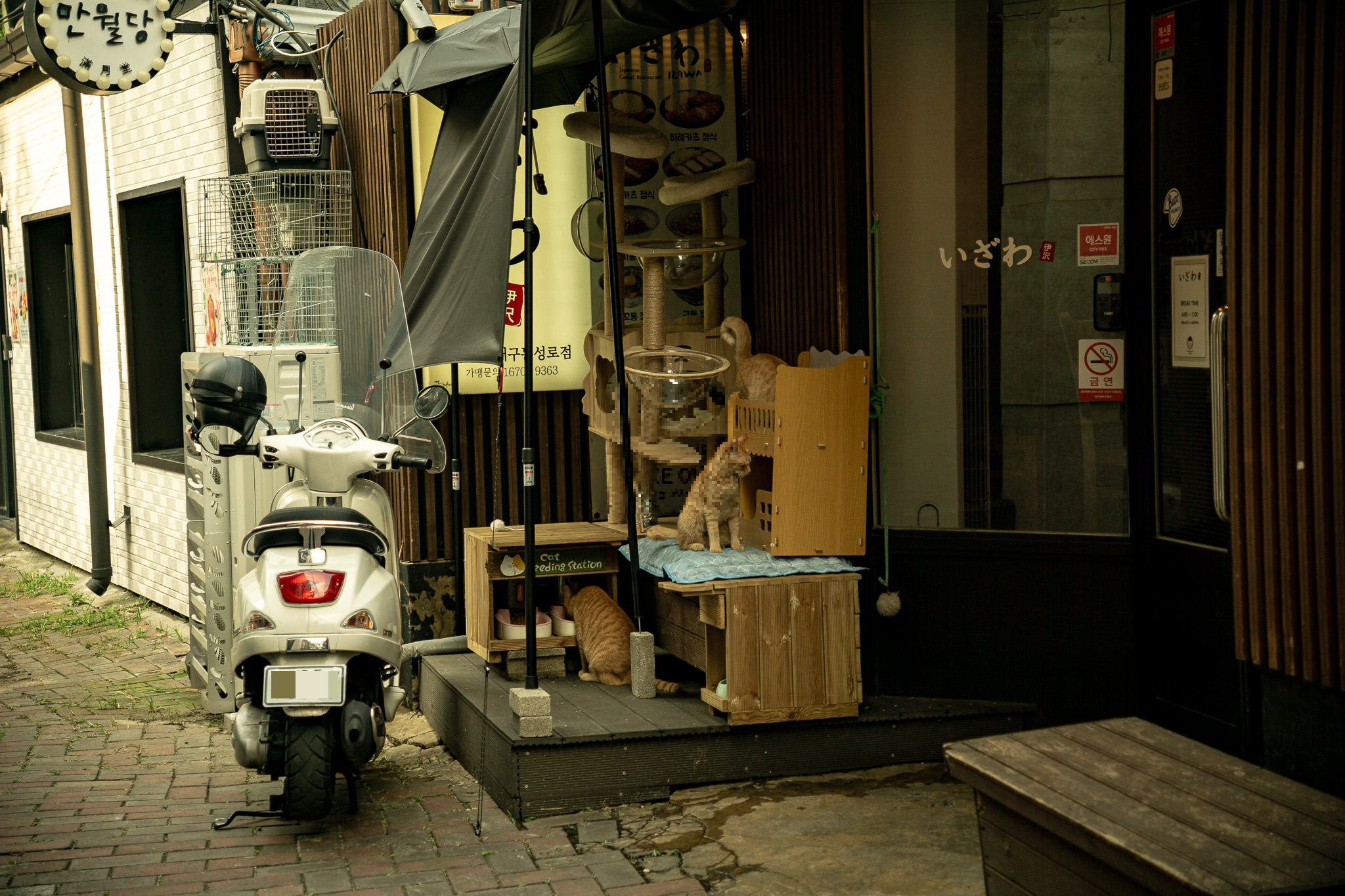 가게 앞에는 고양이 3마리가 손님을 반기고 있다.