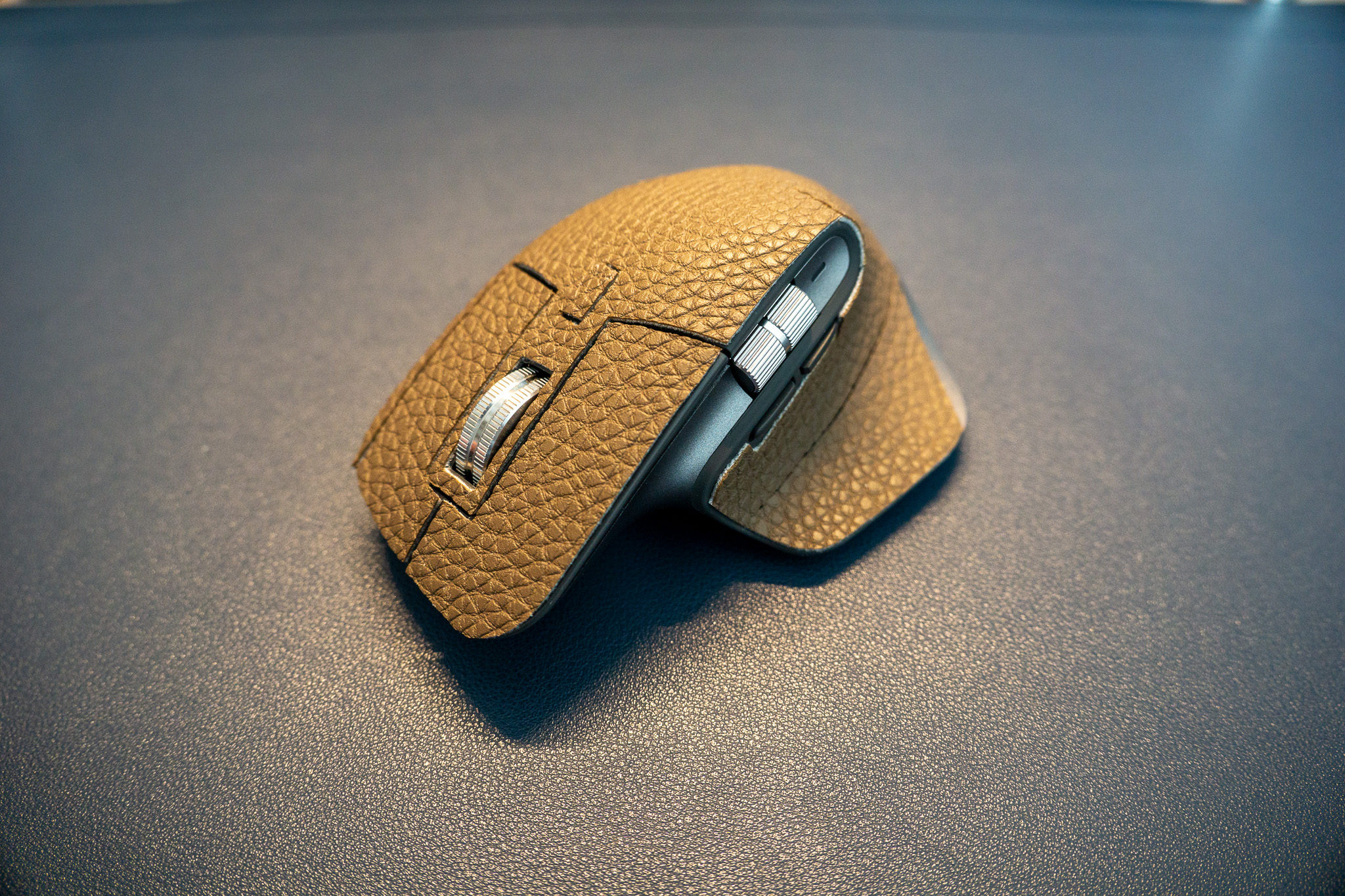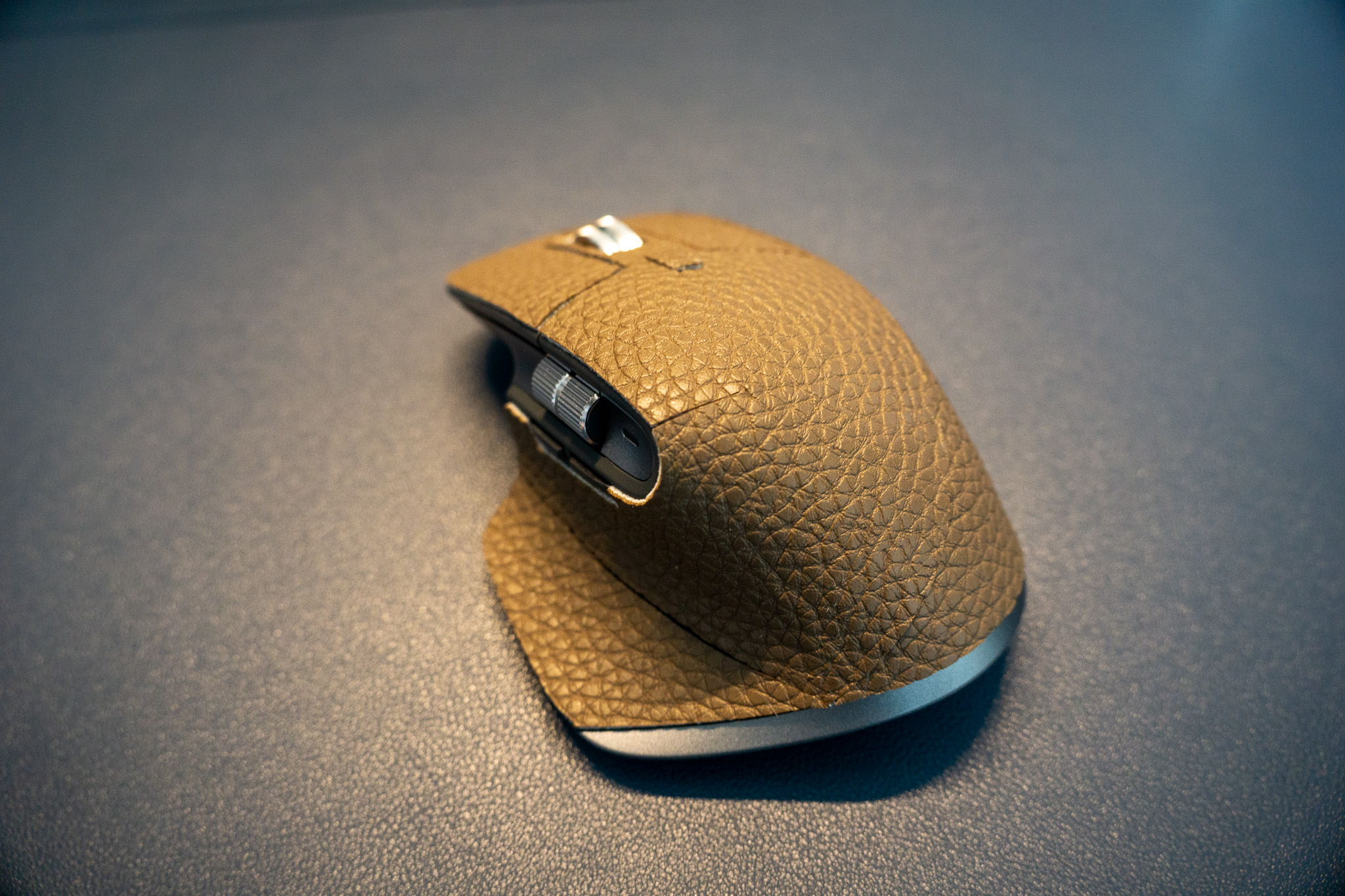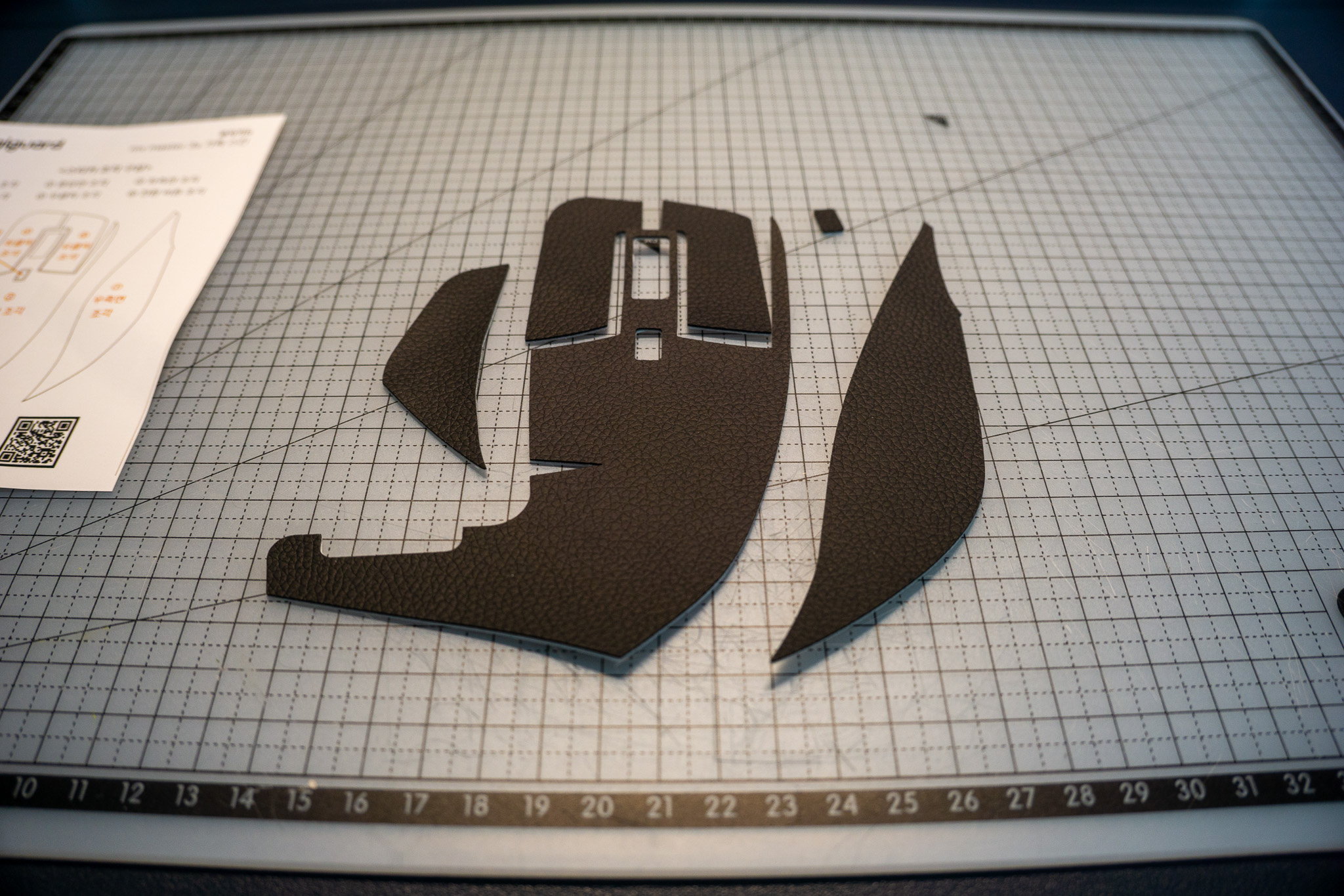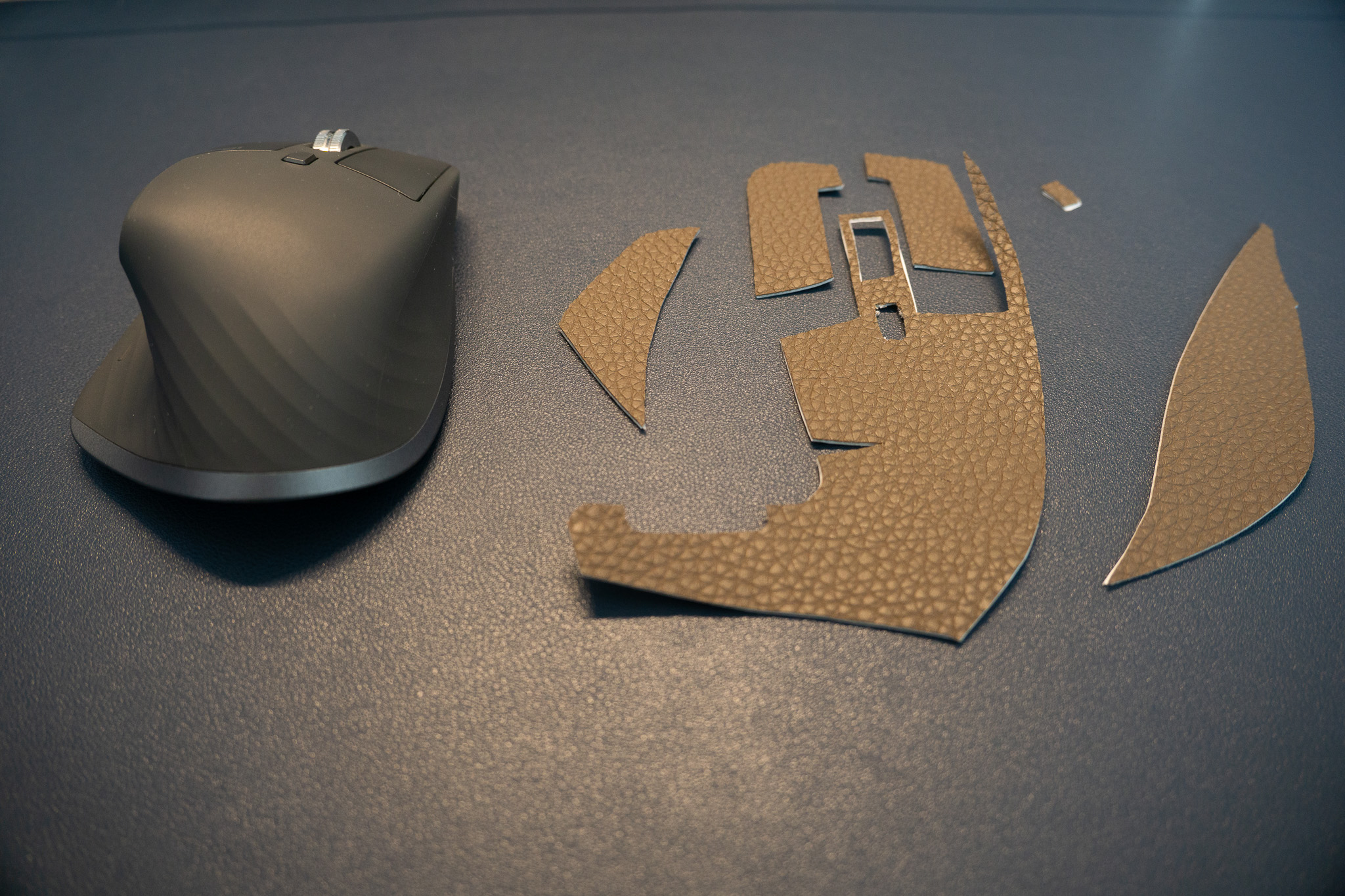 미리 재단해둔 가죽스티커를 활용하여 마우스 스킨 작업을 한다