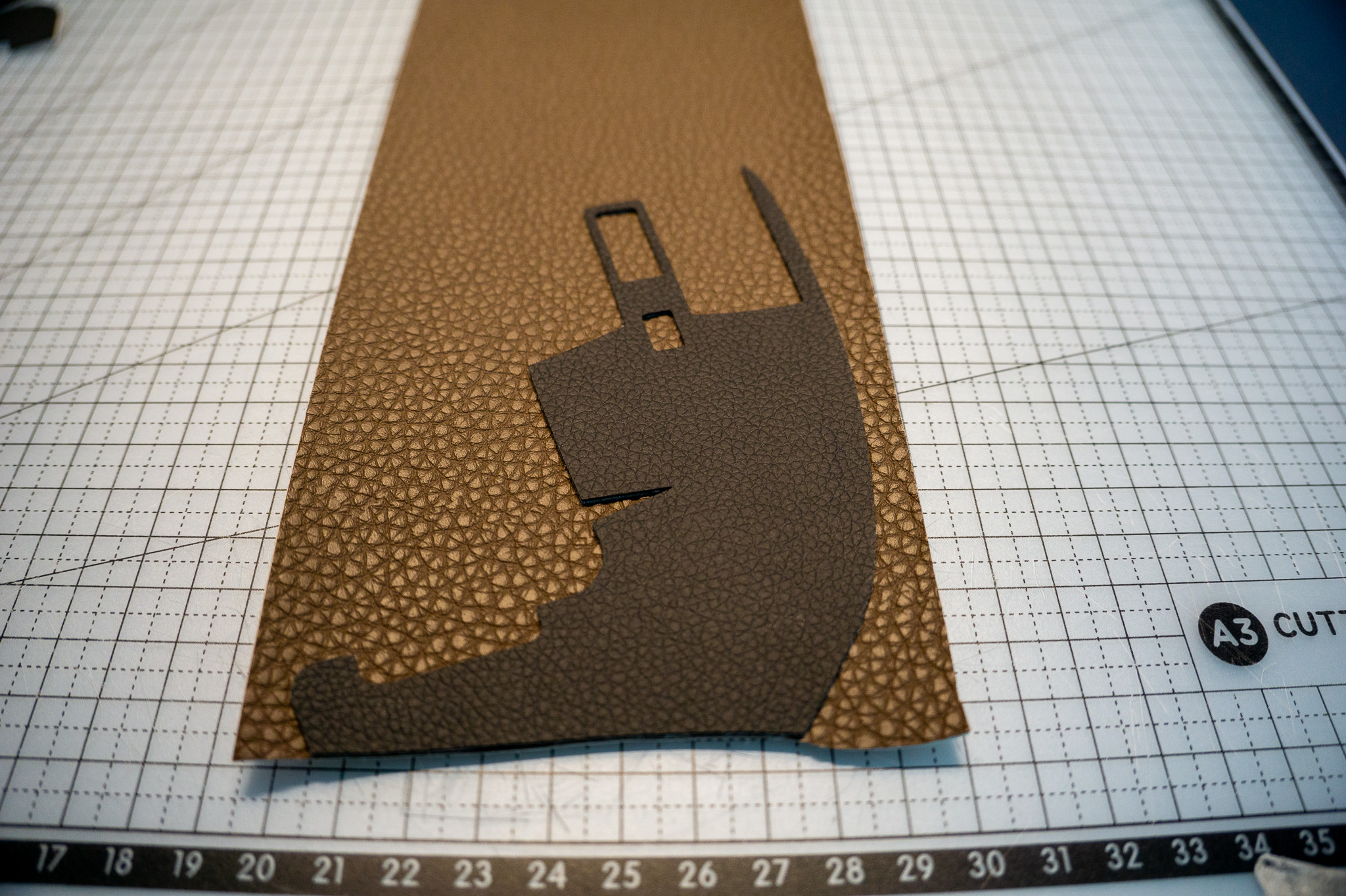 가죽을 대어 재단한다